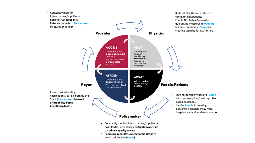 The COVID 19 crisis is not a medical problem any longer. It’s a delicate balance between health and economics and needs each of the 5 stakeholders to understand and play their role in a coordinated way to bring the economy back to health before it goes into shock! It can’t be left to Government alone!